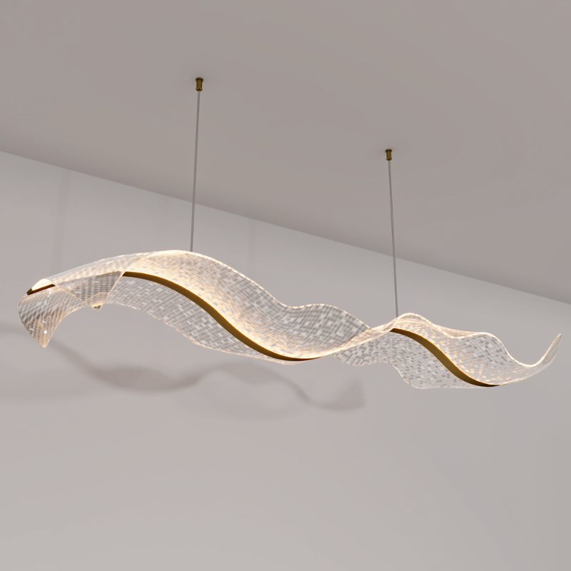 The Fiora Wave Chandelier is a captivating fusion of artistry and luxury, designed to bring a sense of motion and sophistication to any space. Its graceful, undulating form, crafted from transparent acrylic, exudes a dynamic energy, while a polished gold-finished aluminum ribbon enhances its opulent appeal. Emitting a soft, radiant glow, this chandelier serves as both a functional light source and a stunning centerpiece, perfect for elevating modern interiors with a touch of glamour.