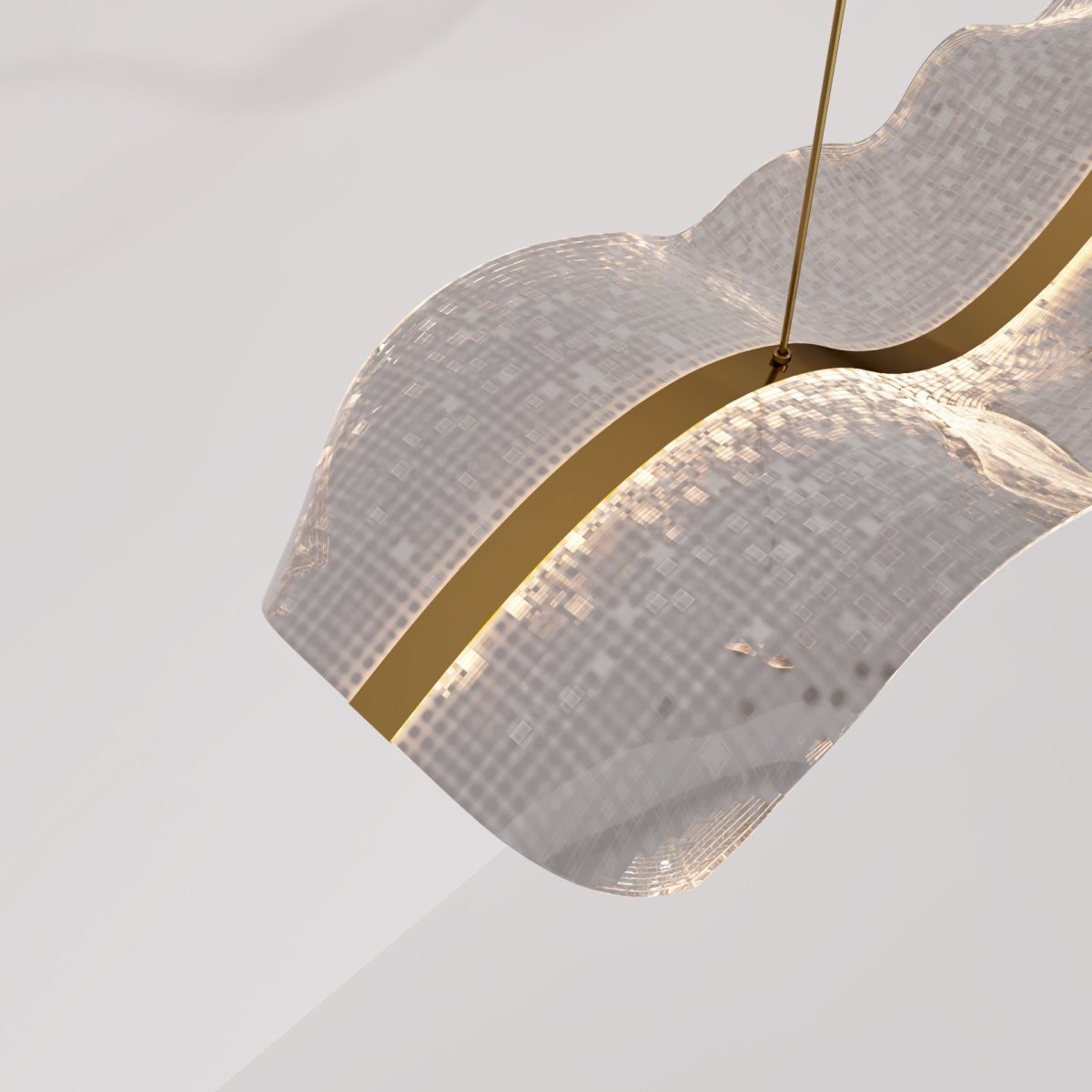 This chandelier is modern elegant and totally unique. The wavy design with gold accents makes it a true statement piece. The soft glow creates the perfect ambiance making my living space feel luxurious.