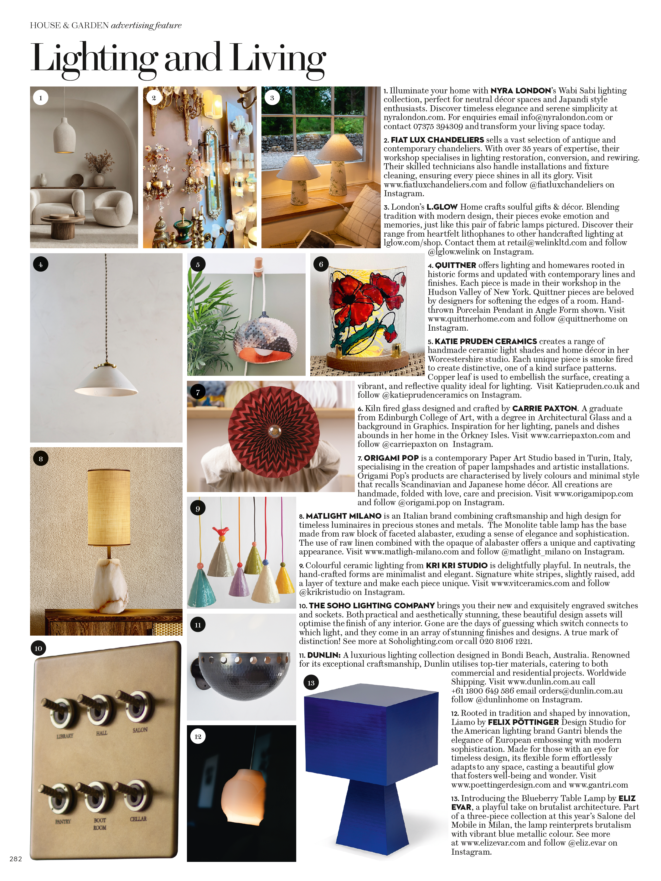 We’re excited to announce that Nyra London has been spotlighted in the latest issue of House & Garden Magazine, October 2024. The feature showcases our Neutral Décor collection, emphasizing the growing trend of serene, earthy tones in modern homes. Special attention is given to our Wabi Sabi collection, which celebrates the beauty of imperfection through handcrafted, minimalist lighting fixtures.
