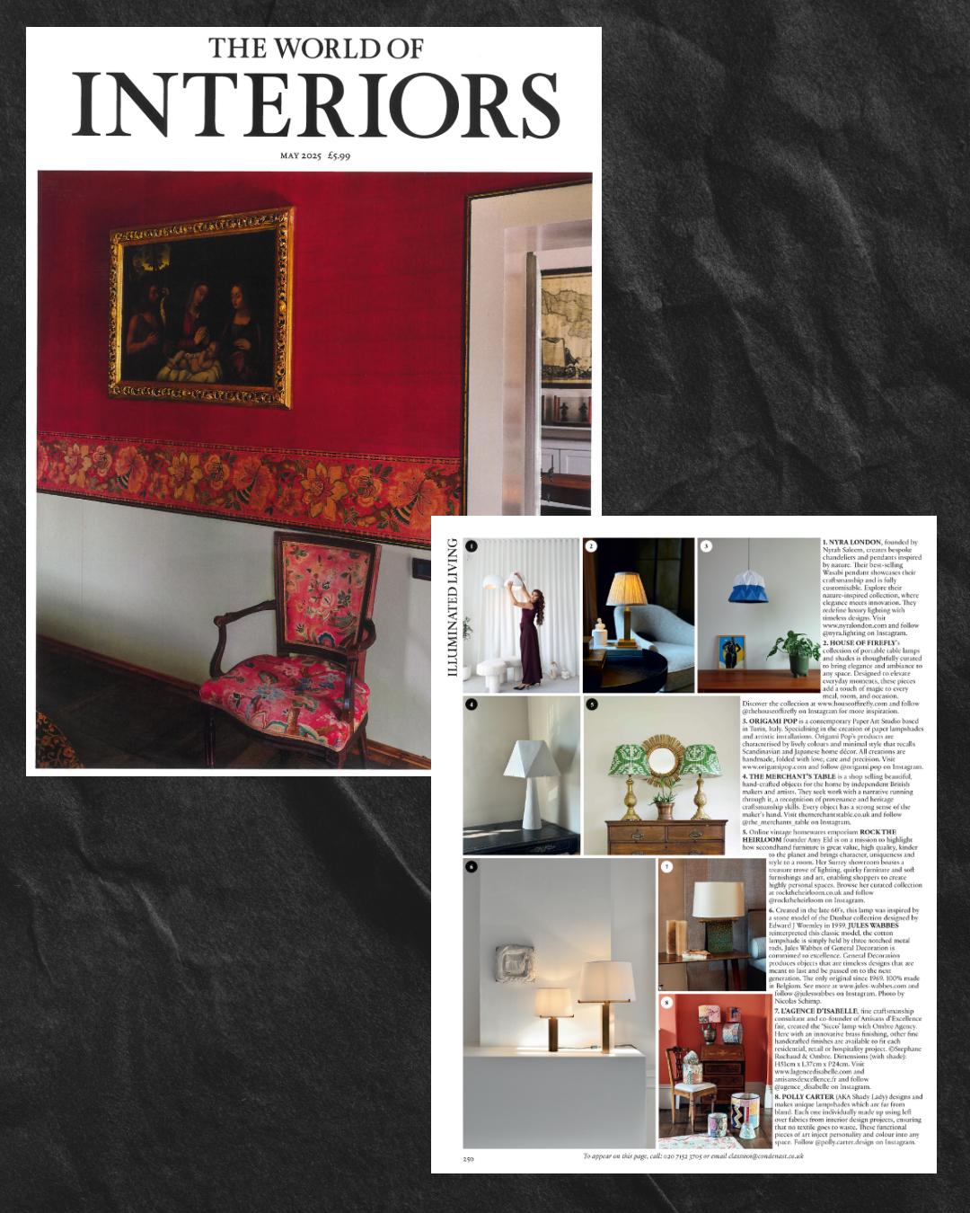 We’re excited to announce that Nyra London’s founder has been featured in the latest issue of World of Interiors Magazine, May 2025. The article highlights our journey in redefining luxury lighting, with a focus on craftsmanship, innovation, and timeless design. It also explores our commitment to blending artistry with functionality, showcasing how Nyra London’s bespoke chandeliers and lamps are transforming interiors worldwide.