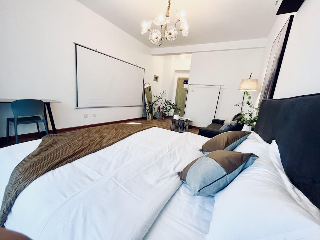 If centred above the bed, allow 75–90cm clearance above mattress height.