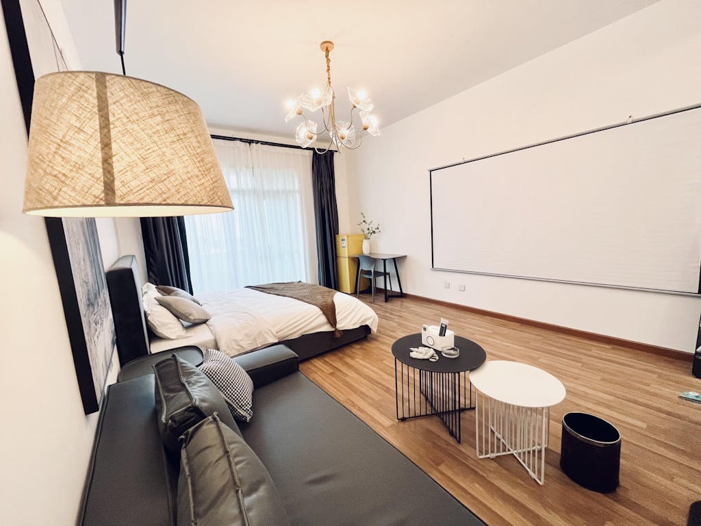 For double-height ceilings, the chandelier should drop approximately ½ to ⅔ of the total ceiling height.