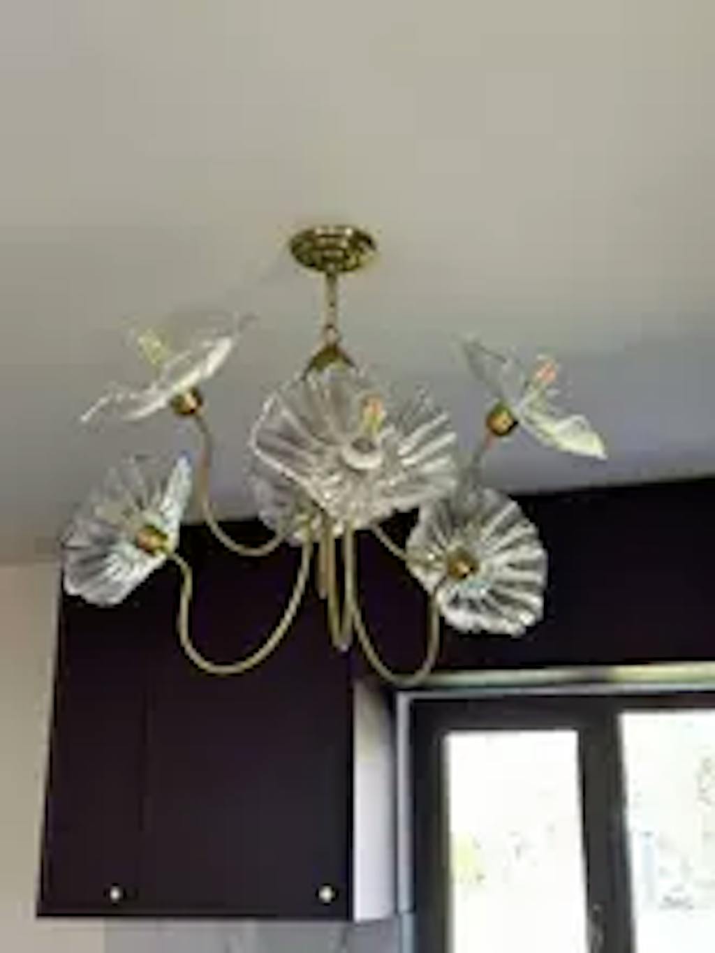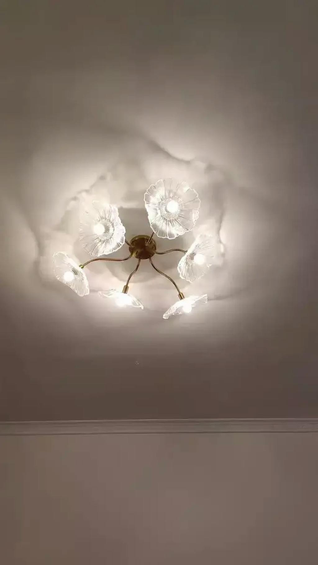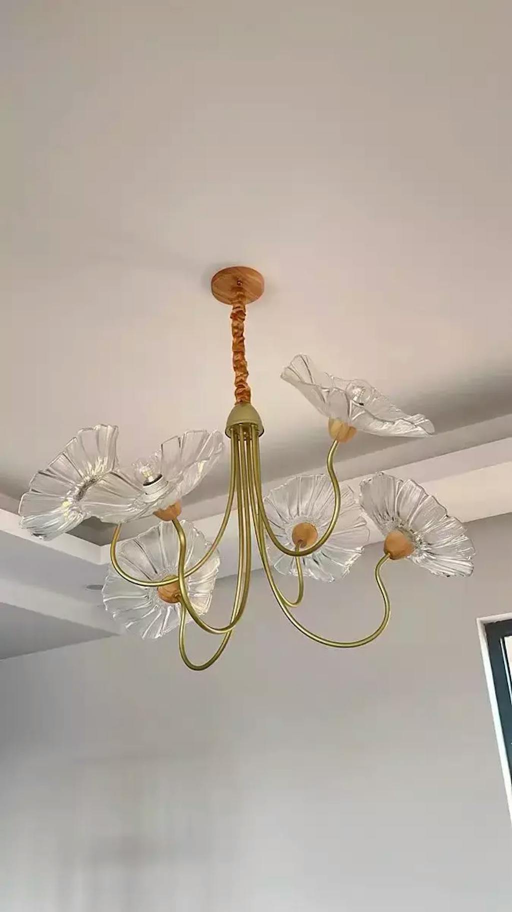 This lamp is very beautiful and in line with the home decoration style.We recommend a 6-head one,which can only reflect its beauty after installation.The actual product looks better than the photo effect,and the glass shape is very unique.