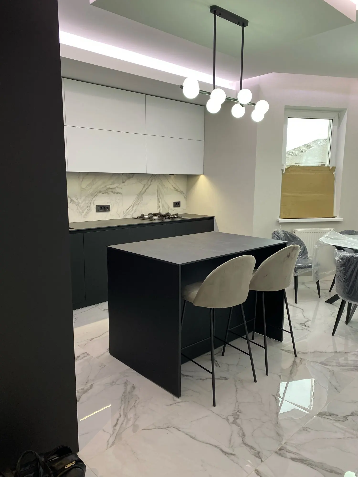 Brighten up your home with The Illuminator, a stylish and modern pendant chandelier made from aluminum and iron with sleek glass bulb covers. This light fixture comes in different sizes and includes LED bulbs, giving you the option of cool white or warm white lighting. It's perfect for any room, from kitchens to living areas, and the flush mount design makes it easy to install and adds a clean, finished look.