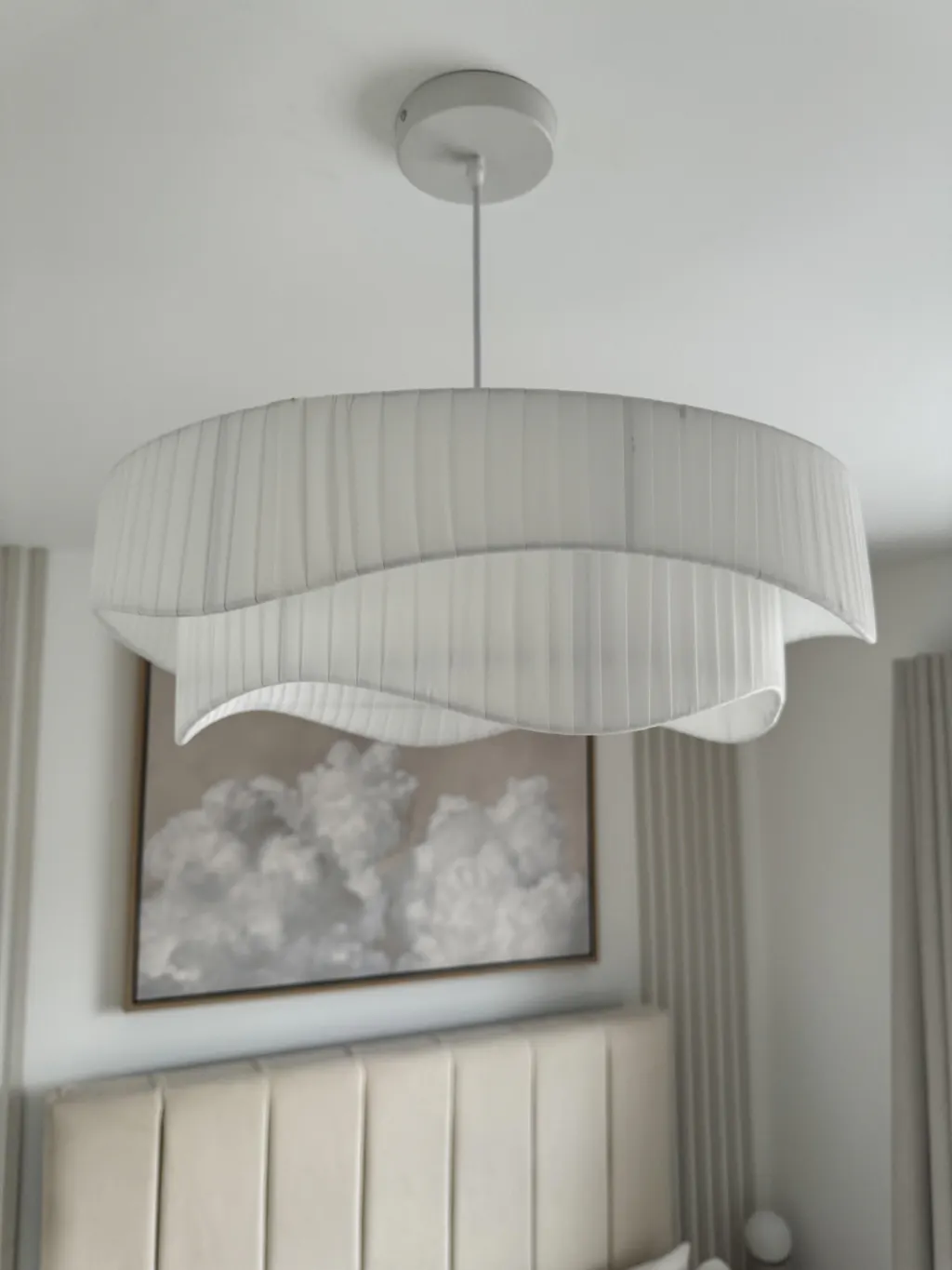 Such an amazing company. Our lights arrived fast, packaged great. Such good quality lights, great fabric. The light looks so dreamy in our bedroom. I cannot fault it. It was easy to install for our electrician, no problems at all. Adjustable height. Over the moon! Thankyou so much, our bedroom looks so expensive with the new light! Such unique items.
