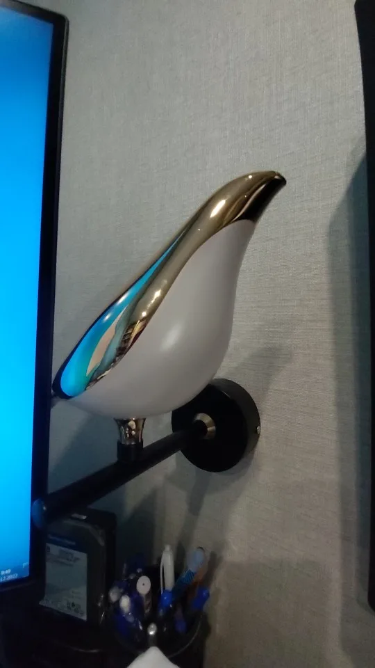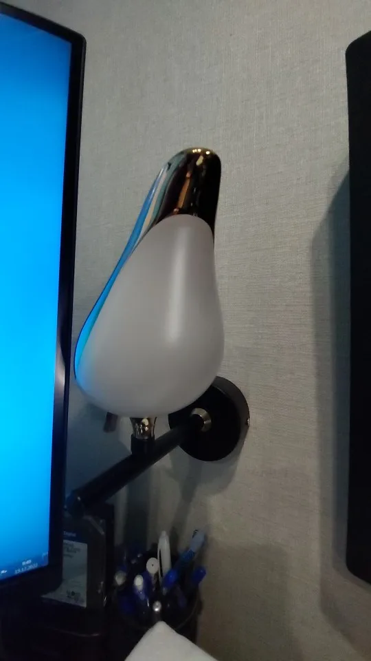 Beautiful sconce lamp. Hung over his desk. Shines with a comfortable warm light. It is convenient that the bird can be rotated, thereby adjusting the light of the table. It upsets the screws a little, it was possible to paint them in black (I will do it a little later) otherwise they catch the eye. Delivery by courier.