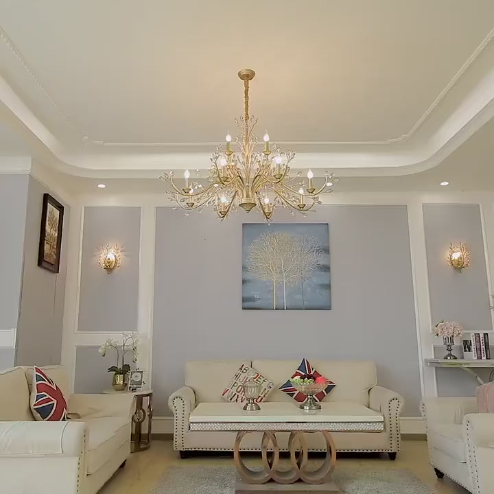 Transform your living space with the Islington Retro Crystal LED Chandelier, a captivating blend of vintage charm and modern elegance. Crafted with a delicate flower branch design from wrought iron and crystal, this chandelier radiates a timeless allure inspired by nature. Available in black or gold, it offers customizable lighting options, casting either a warm or cool glow to suit your ambiance.