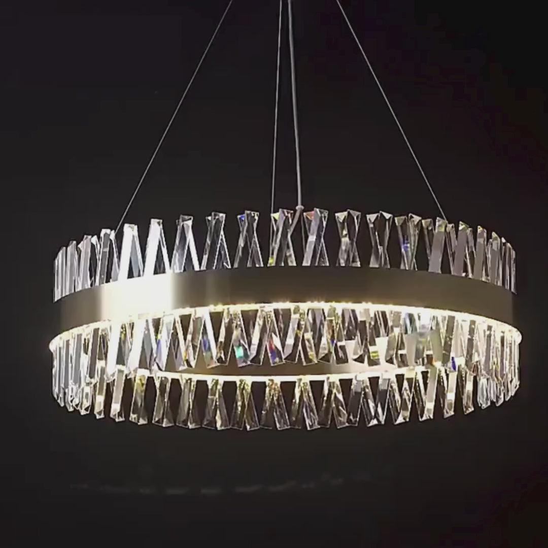 Where beauty meets elegance. Handcrafted with the finest crystals, this crystal chandelier will add a royal touch to any space. With its modern crossover design and intricate crystal structures, this chandelier is sure to get hearts racing. Place it in either the hallway, living room or above the staircase- you choose.