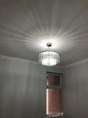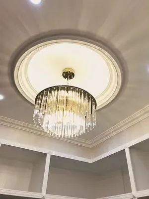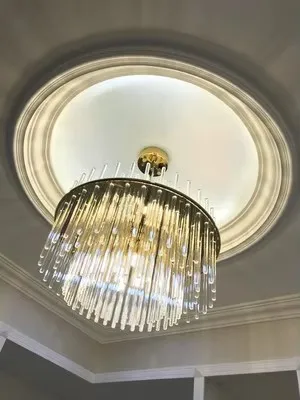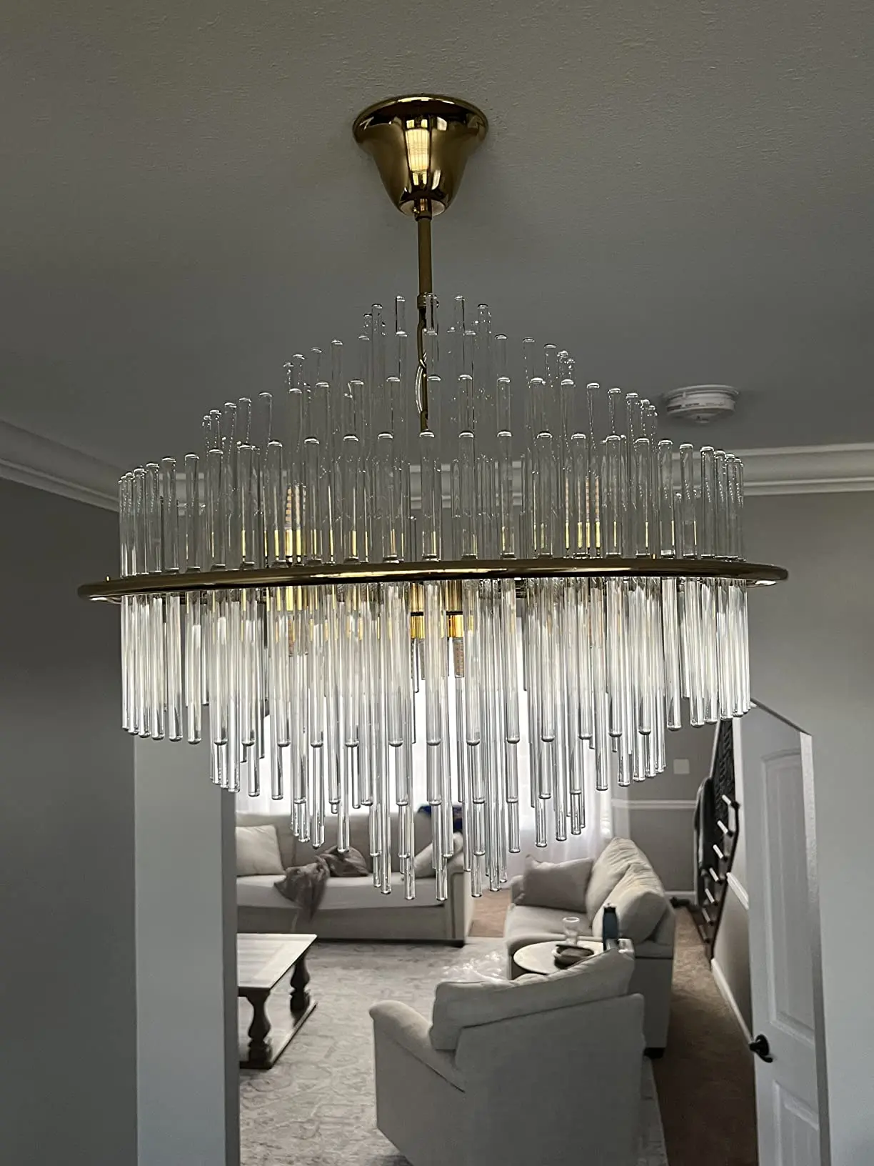 Very beautiful chandelier. The glass rods are awesome. This light really enhanced the beauty of my home. Excellent purchase, looks like it cost much more than it did.