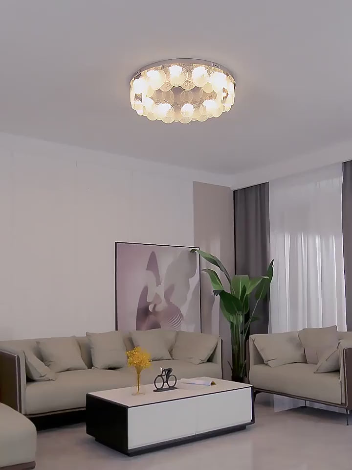 Brighten up your living space with our Round Glass Chandelier. It's designed to give off a soft, candle-like glow, thanks to its delicate textures and frosted paint. Made of stainless steel and glass, it's durable and comes with 3-color dimming options for just the right amount of light. Easy to install and perfect for any decor style, its round shape and special light effects add a touch of elegance to your room. Upgrade your home effortlessly with this stylish yet practical chandelier for a cozy atmosphere everyone will love.