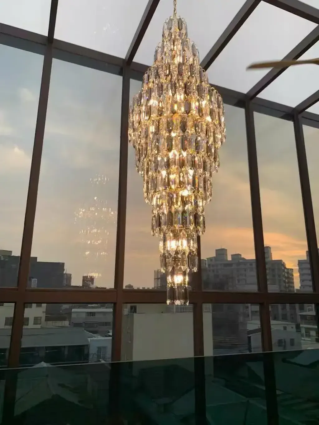 Made with layered crystal glass and durable metal, it reflects light beautifully without creating harsh glares. Whether you choose warm, neutral, or a three-color mode, Shyra ensures the right mood for every occasion. This chandelier is more than decoration, it solves the challenge of lighting large vertical areas while adding timeless style.
