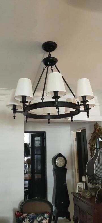 Elevate your space with our exquisite Multiple Linen Head Chandelier. Crafted with attention to detail, this stunning fixture features a harmonious fusion of contemporary design and timeless elegance. With its multiple linen shades, each emitting a soft and inviting glow, this chandelier creates a captivating ambiance in any room. Perfect for both modern and traditional settings, it's a statement piece that effortlessly combines functionality and beauty. Illuminate your surroundings with sophistication using our Multiple Linen Head Chandelier.